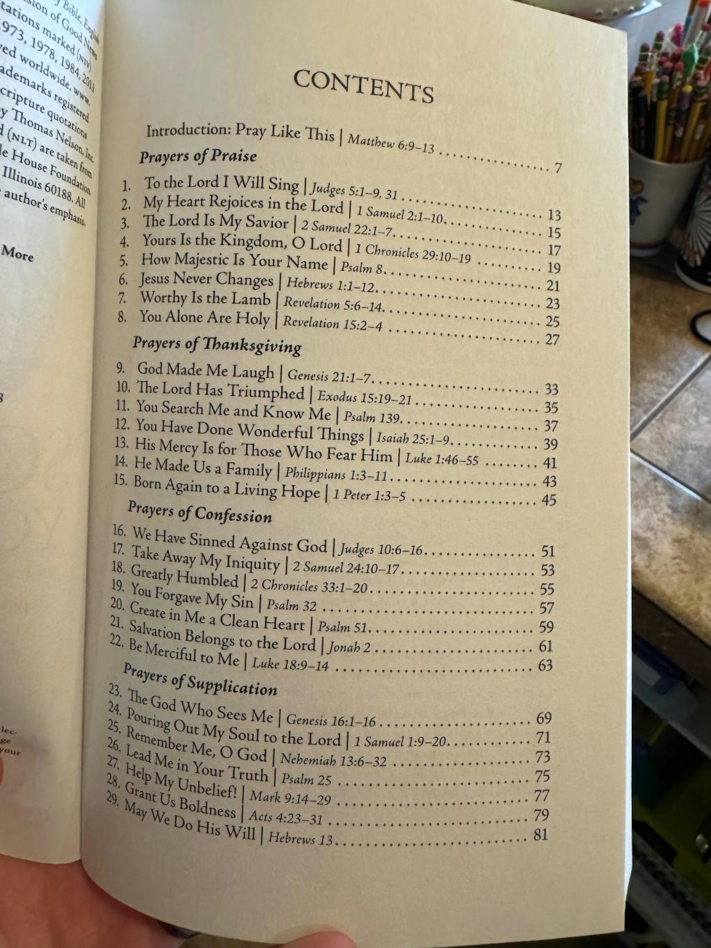 Each devotional is anchored in God’s Word, drawing from examples of prayers in Scripture. Even familiar passages took on new depth when prayed intentionally through the lens provided in this book. A few of the readings prompted me to slow down and pray Scripture I had memorized in the past but hadn’t really used as prayer in a while. That was really a blessing to me.